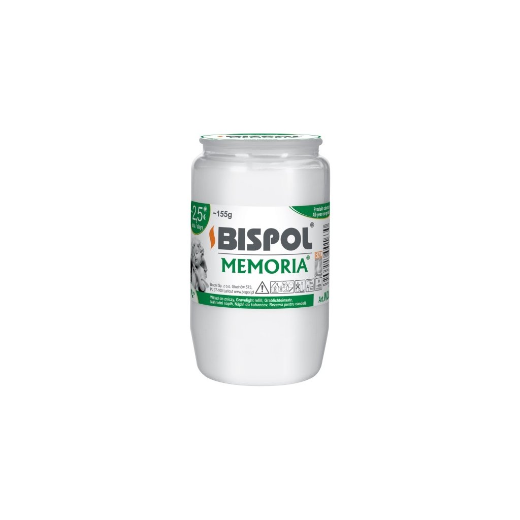 BISPOL Memoria olejová náplň kahanec 105g Olejová náplň do sklenených kahancov. Naplň: 155g Výška náplne: 9,5cm Doba horenia: cca 60 hodín Balenie obsahuje: 155gDodatočné parametre
