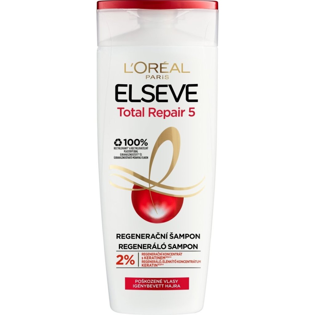 LOREAL Elseve Total Repair 5 šampón na poškodené vlasy 400mlŠampón na vlasy Elseve Total Repair 5 je určený pre poškodené vlasy.Obsahuje 2% regeneračný koncentrát a pro-keratín, ktorý dokonale regeneruje a posilňuje vlasové vlákna.Dokonale vyživuje vaše vlasy a dodáva im odolnosť a pevnosť proti opotrebovaniu.Sceľuje rozštiepené končeky vlasov a poskytuje im potrebnú starostlivosť.Vytvára bohatú penu, ktorá dokonale odstraňuje všetky nečistoty vo vlasoch a na pokožke.Eliminuje lámanie vašich vlasov a zlepšuje ich elasticitu.Účinne hydratuje vaše vlasy a chráni ich pred vysúšaním a lámaním.Vyhladzuje vlasy a poskytuje im prirodzený lesk.Zanecháva vaše vlasy dokonale zregenerované, vyživené, jemné a hebké na dotyk s príjemnou vôňou.Objem balenia: 400ml