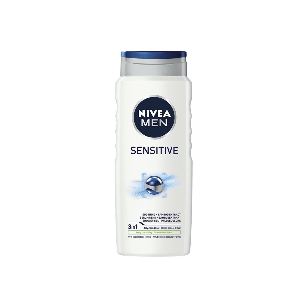 NIVEA Men 3v1 Sensitive sprchový gél 500ml Sprchový gél Sensitive je určený pre všetky typy pokožky vrátane jemnej či citlivej. Dokonale sa postará o vaše telo, vlasy či tvár. Obsahuje výťažky z bambusu, mandľového oleja a vitamínu E, vďaka ktorým intenzívne hydratuje a vyživuje vašu pokožku. Vytvára bohatú aktívnu penu, ktorá dokonale odstraňuje všetky nečistoty z vášho tela či vlasov. Upokojuje vašu pokožku a eliminuje jej podráždenie. Zjemňuje a vyhladzuje pokožku. Účinne ju revitaltalizuje a zabraňuje jej vysúšaniu. Zanecháva vašu pokožku i vlasy dokonale čisté, jemné a hebké s na dotyk s príjemnou vôňou. Objem balenia: 500mlDodatočné parametre